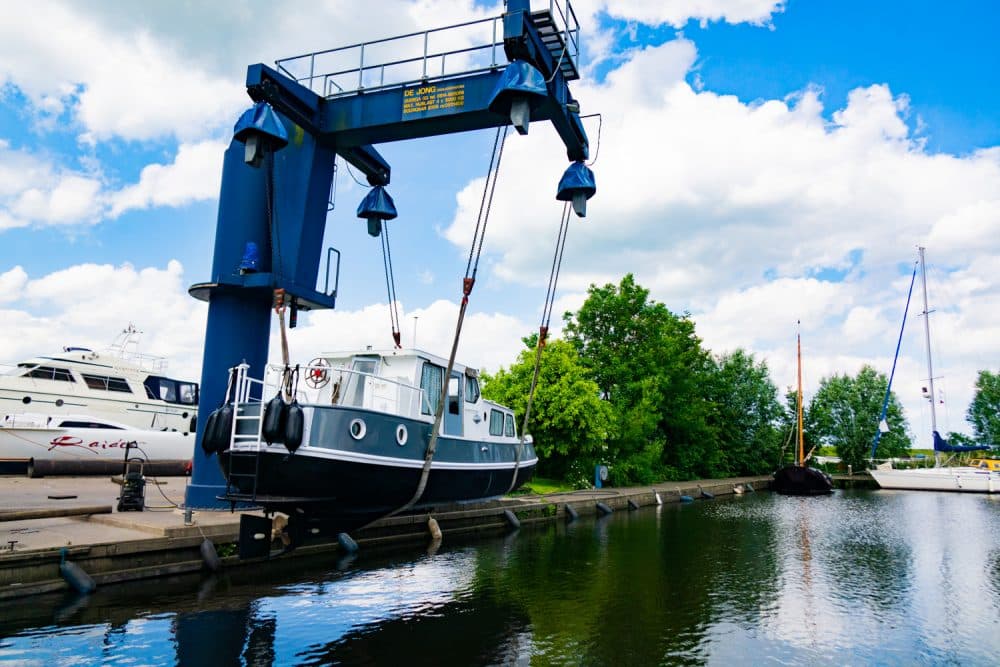Mit unserem Kran können wir Schiffe bis zu 20.000 kg takeln. Mit Mastkran für Segelyachten.